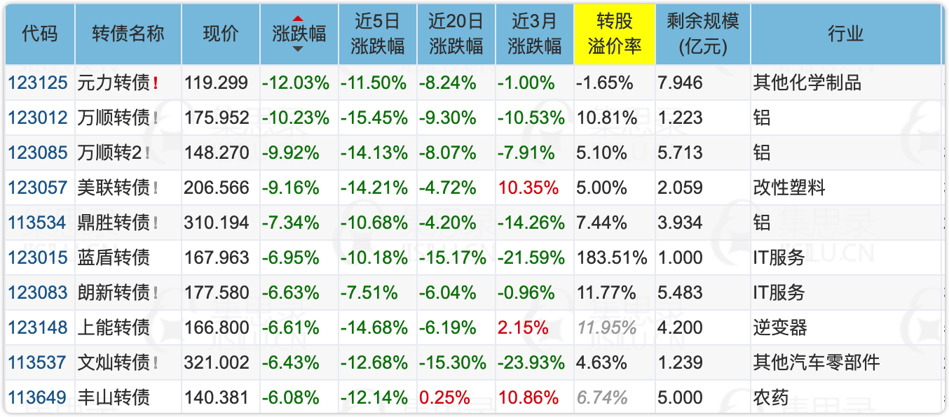 万顺的两只转债正股增发导致转股价上调了8.39%,大跌。