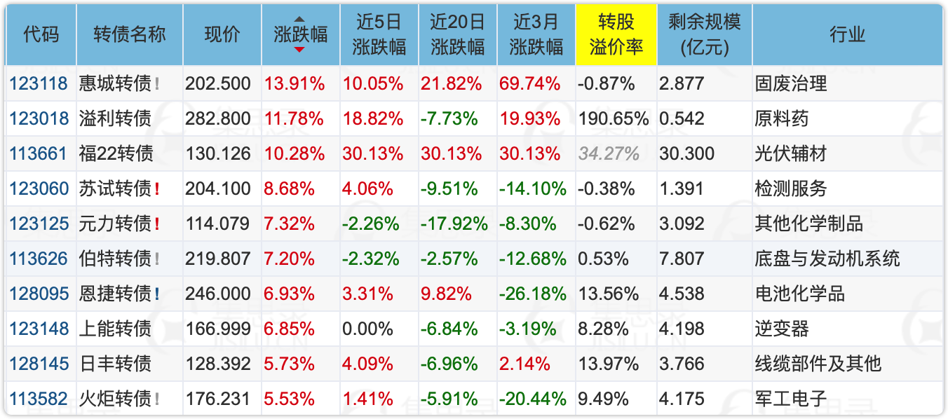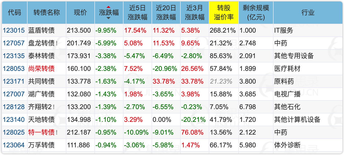 跌幅榜主要集中妖债和中药板块。