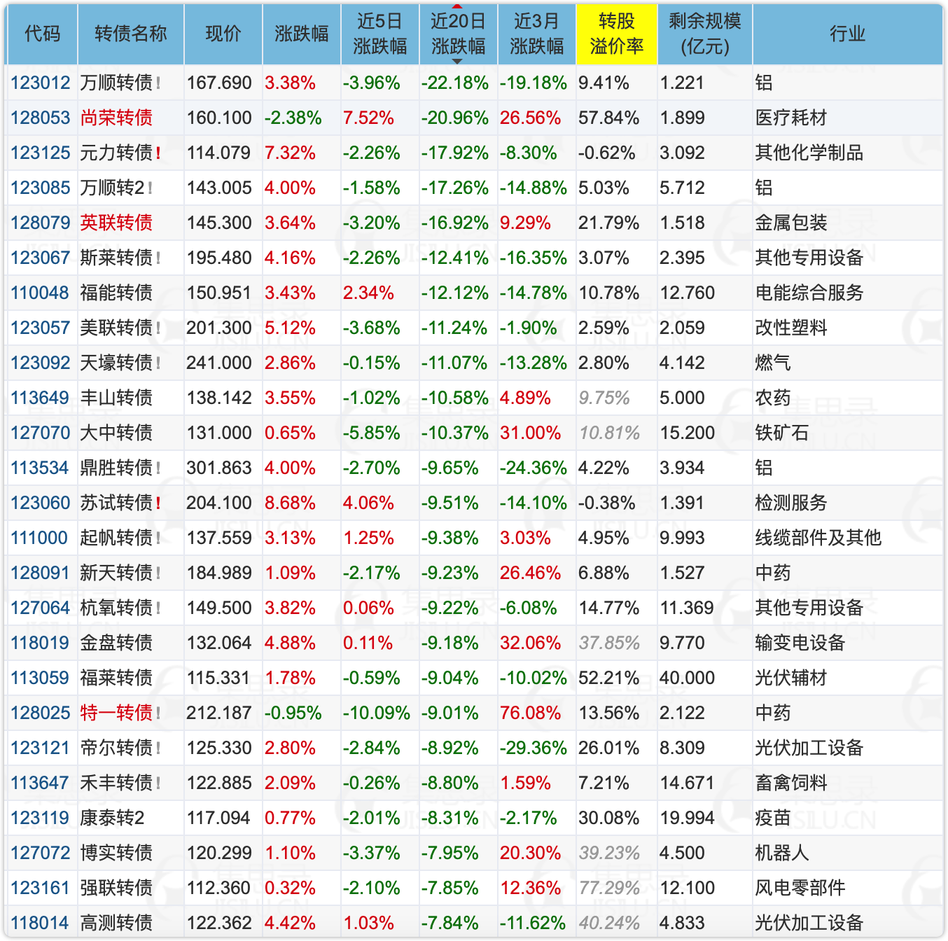 下面是我截图的近20天跌幅最大的25只债,细心的读者可以从中找机会。
