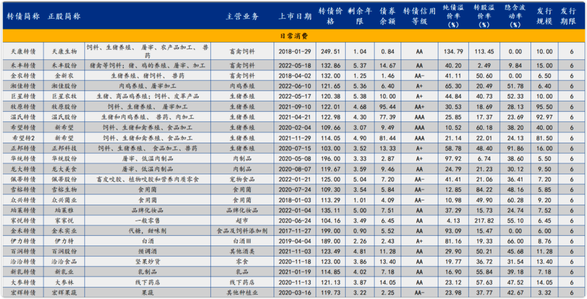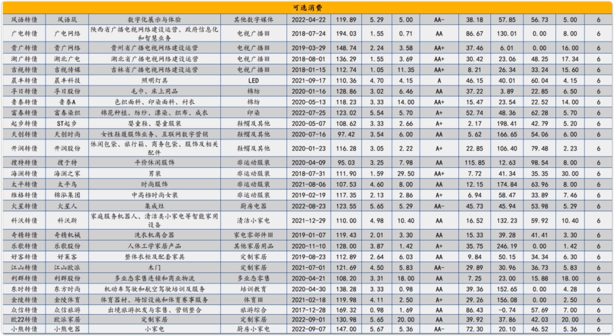 梳理了消费链相关转债,想选择消费债,可以参考下面两张图。