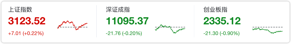 三大指数涨跌不一,截至收盘,沪指涨0.22%,深成指跌0.2%,创业板指跌0.9%。沪深两市全天成交额7837亿元。两市超2800只个股上涨,北向资金全天净买入18.44亿元。