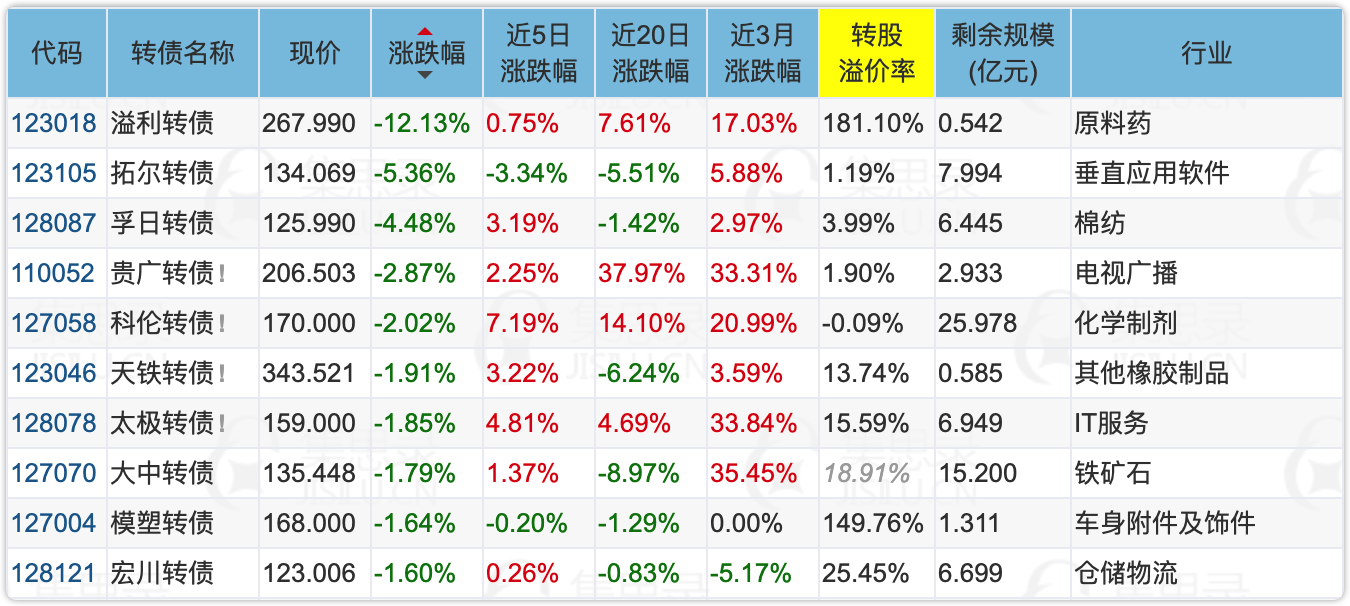 2、跌幅榜主要集中在妖债、即将强赎债、短期炒作债等。