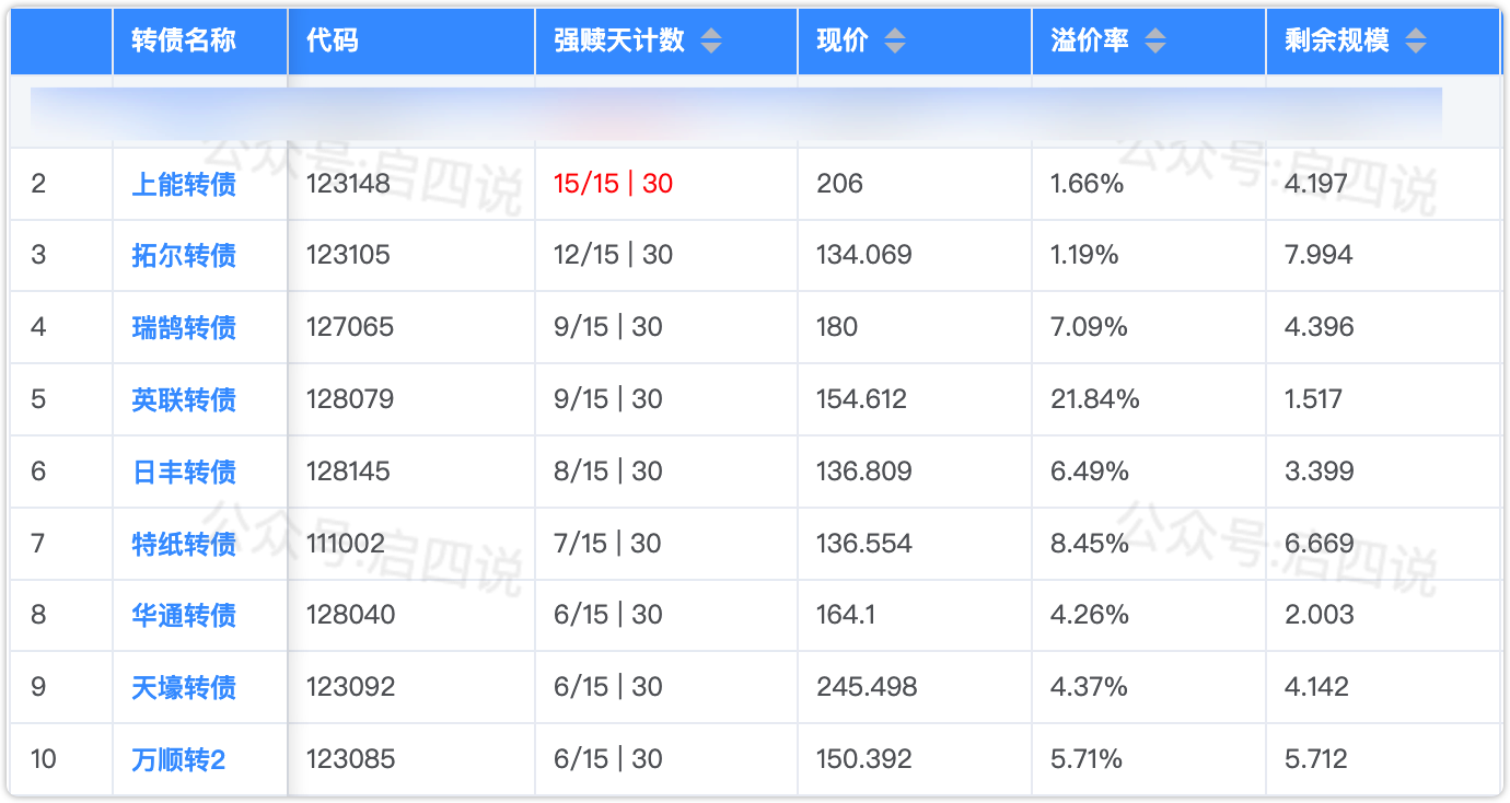 2、瑞鹄转债,还有6天将满足强赎条件,当前溢价率7.09%,有杀溢价风险