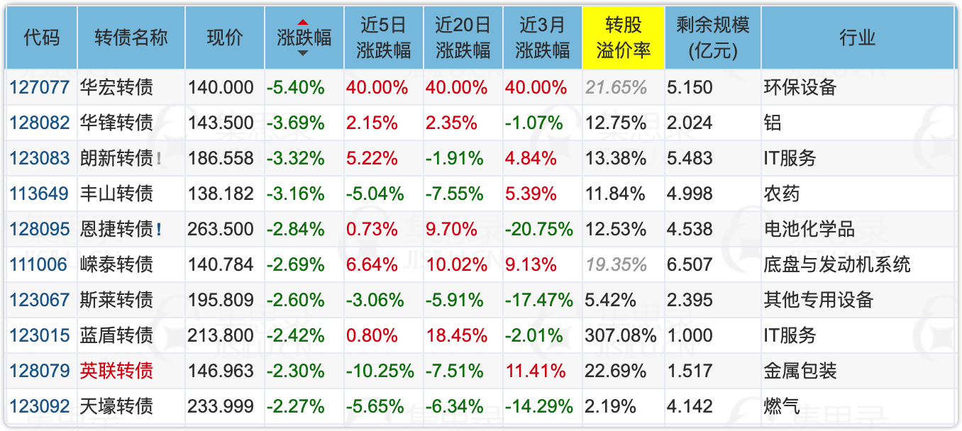 2、跌幅榜主要集中在次新债、储能、金属包装等板块。