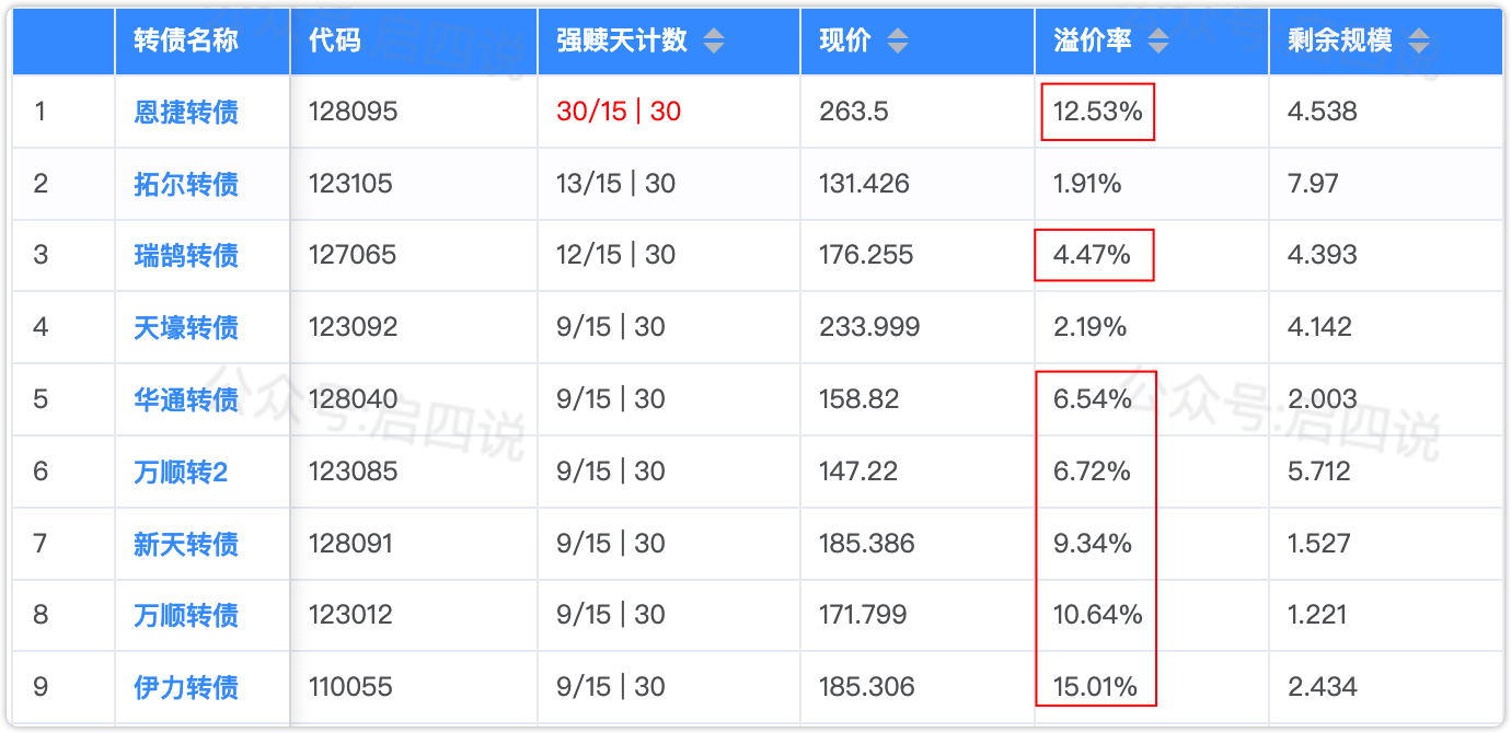 近期即将满足强赎条件的转债,要注意强赎杀溢价风险。