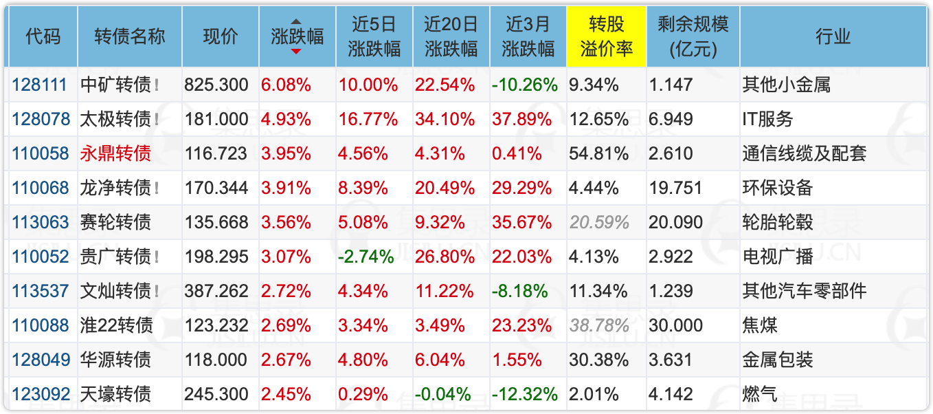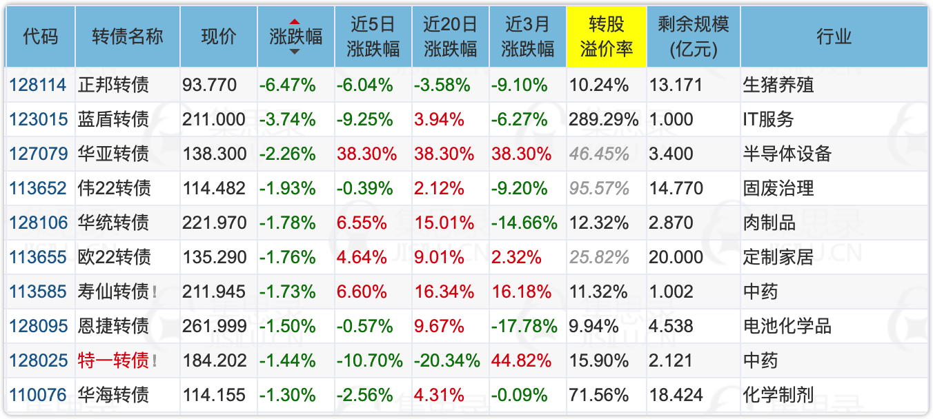 2、跌幅榜大部分跌幅有限,跌幅较大的是正邦转债,正股因为一则破产重整风险提示公告再次跌停。