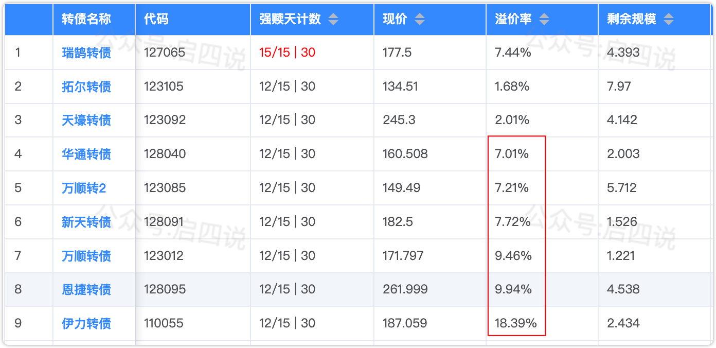 3、下面是近期即将满足强赎条件的转债,要注意强赎杀溢价风险。