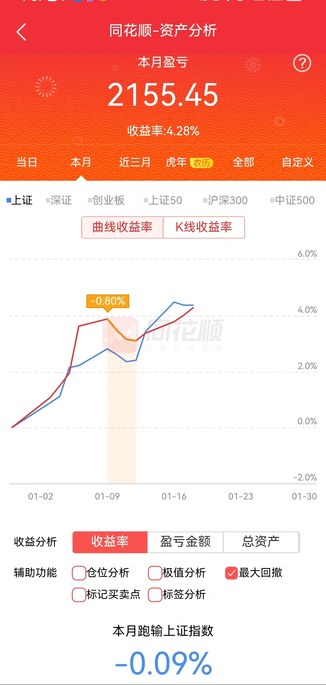 看了一下轮动策略本月表现,5万元实盘,本月收益率4.28%,最大回撤-0.8%。
