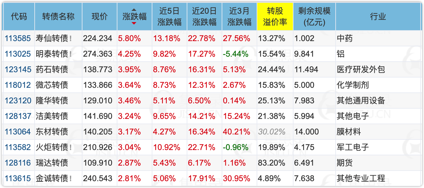 涨幅榜中的瑞达转债,正股瑞达期货涨停。最近券商行情非常好,牛市味道越来越浓,相关的转债按照双低值排序如下: