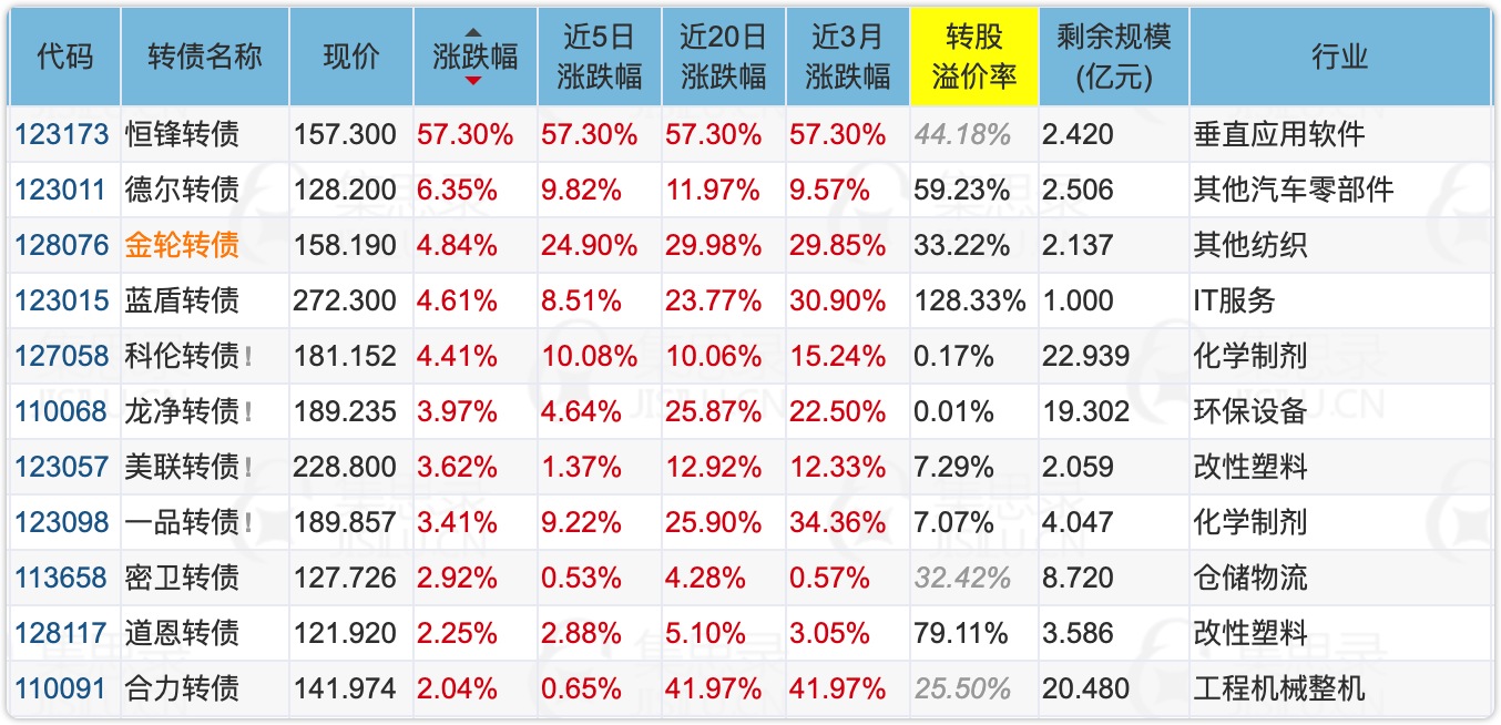 如昨天预测的那样,今天上市的新债恒锋转债顺利冲上157.3元,溢价率44.18%,记忆好像又回到了去年那段疯狂炒作新债的时间。