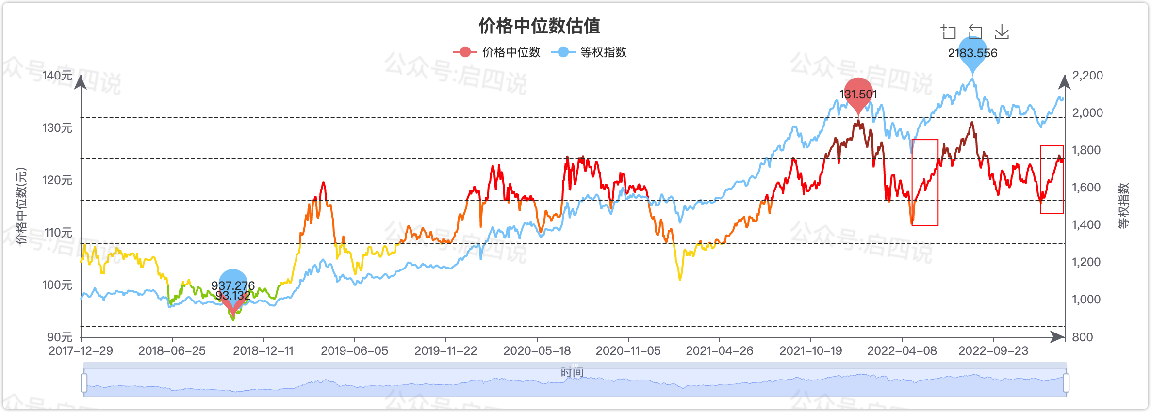 我查了一下去年的中位数数据,发现现在的走势和去年的4-6月份非常像,就是下图中我标注的两个方框: