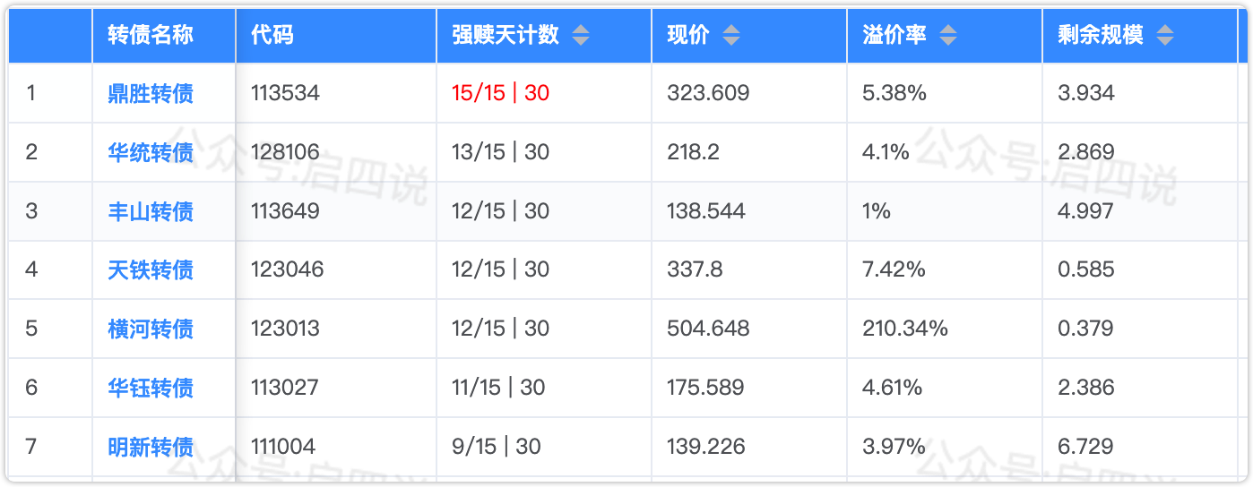2、下面是近期即将满足强赎条件的转债,要注意强赎杀溢价风险。