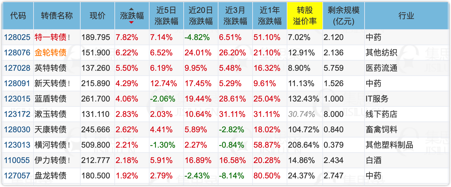 主要集中在医药、白酒、老妖债等板块。