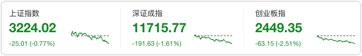 指数午后跌幅扩大,截至收盘,沪指跌0.77%,深成指跌1.61%,创业板指跌2.51%,北证50跌0.58%。两市近3000只个股下跌,全天成交额9141亿元,北向资金净买入20亿元。