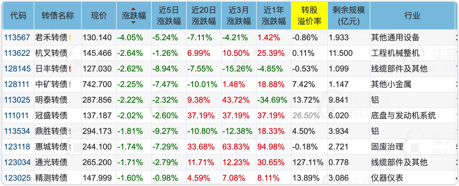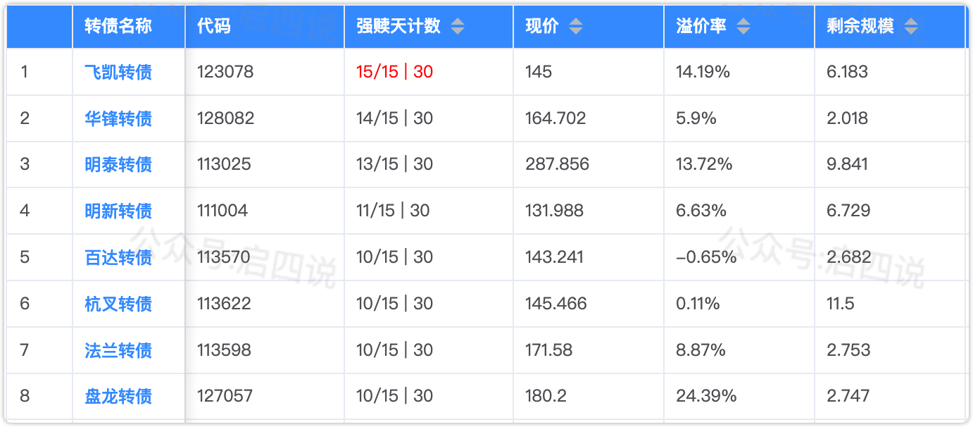 下面这些转债,要注意强赎杀溢价风险,尤其是溢价率在5%以上的。