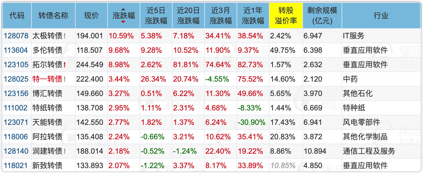 4、配债股,经过上周四五的回调,出现不少性价比较高的,最近又涨上来了。