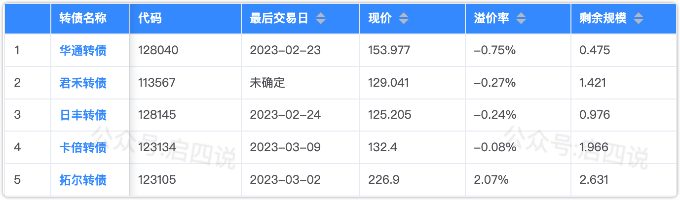 其中华锋转债,公告2023-06-30前不强赎,参考以往数据,溢价率可能会回升到10%左右。