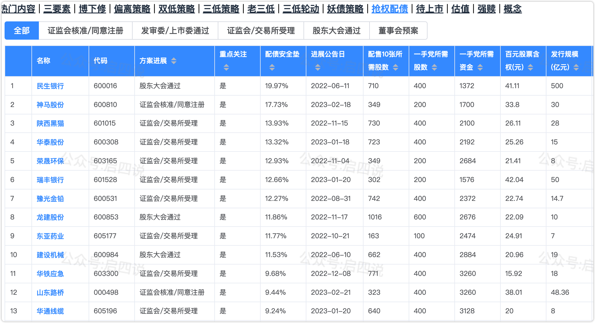 2、分享一些配债安全垫较高的股票数据: