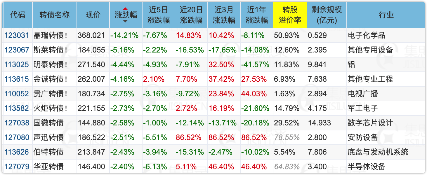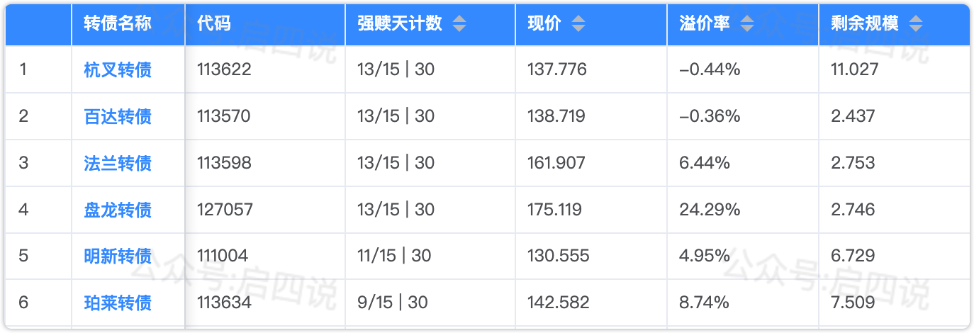 下面这些转债,要注意强赎杀溢价风险,尤其是溢价率在5%以上的。