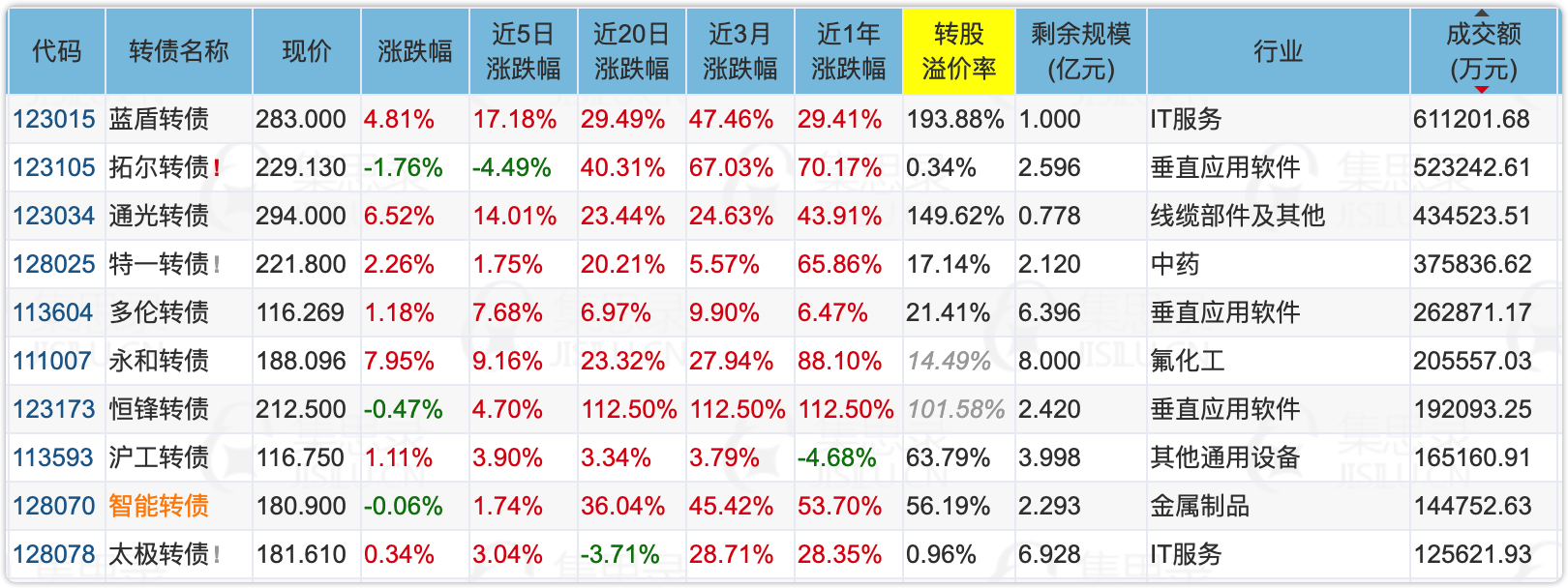 1、涨幅榜前十