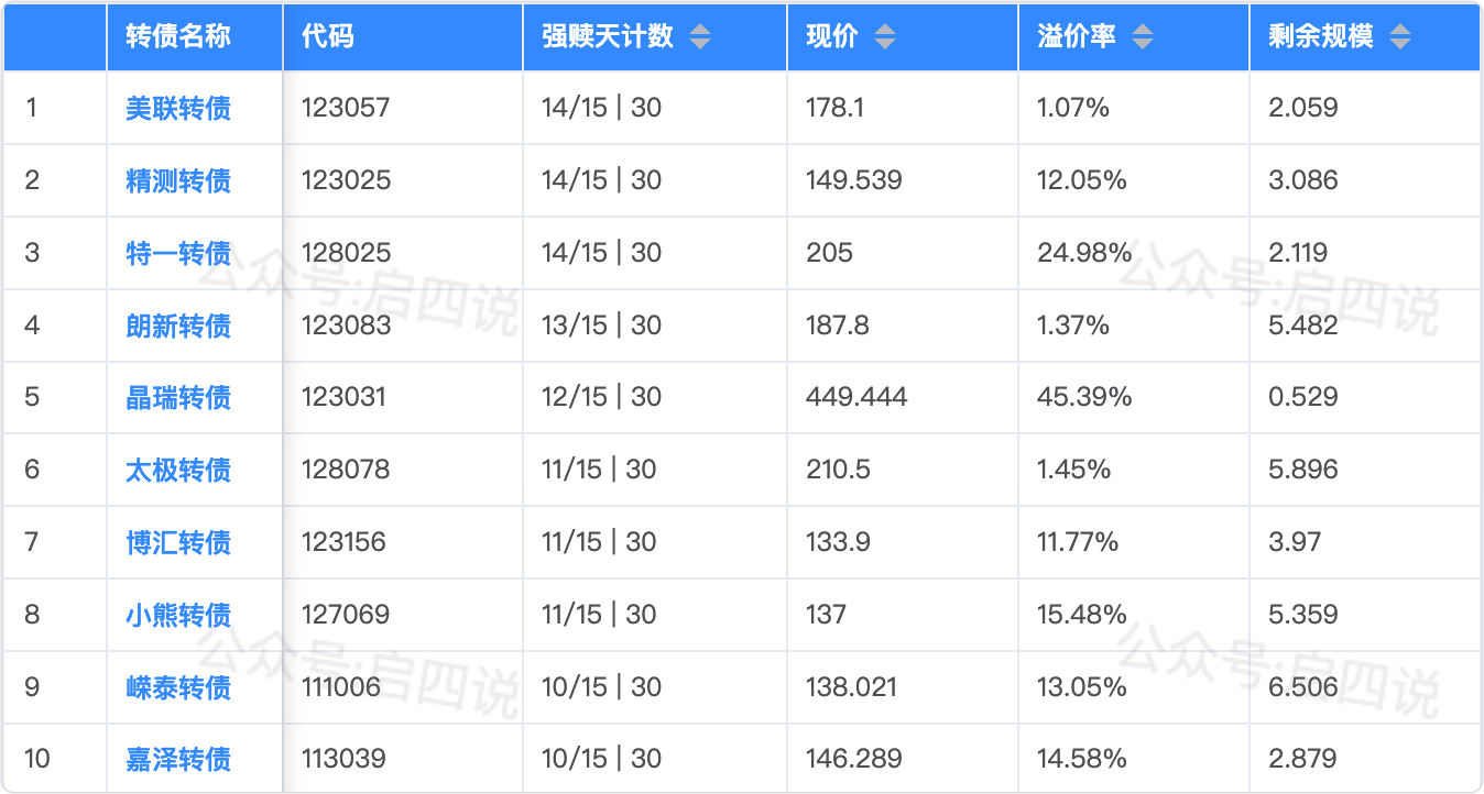 下面这些转债,要注意强赎杀溢价风险,尤其是溢价率在5%以上的。