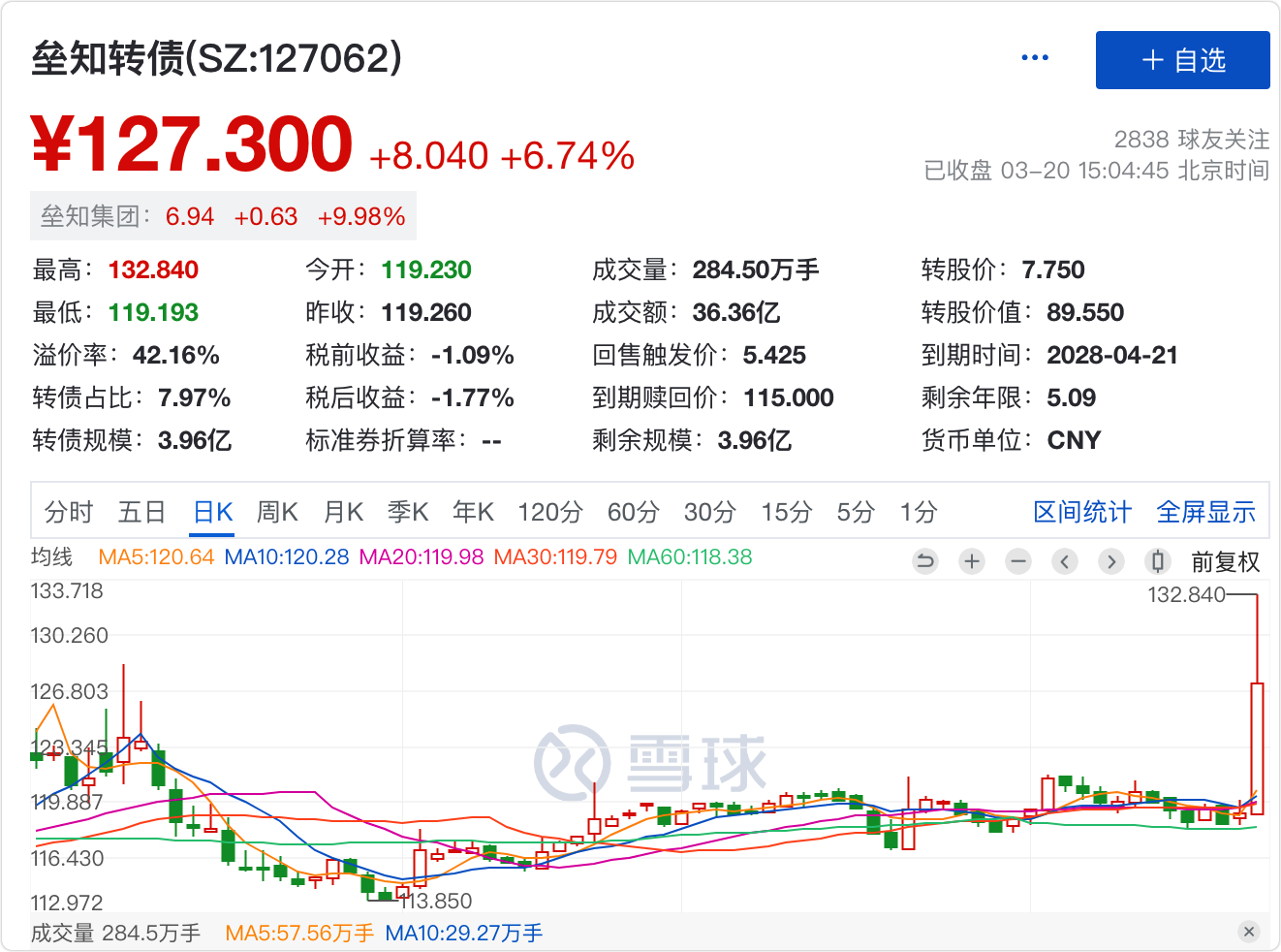 1、垒知转债,今日又新增了“一带一路”和“ERP”概念,作为一个蹭概念高手,虽然主营业务是卖建筑材料的,但是目前概念多达14个:【福建基建;无人岛开发;参股民营银行;装配式建筑;建筑节能;储能;光伏概念;光伏建筑一体化;新材料概念;医疗器械概念;电子商务;数字经济;一带一路;ERP】