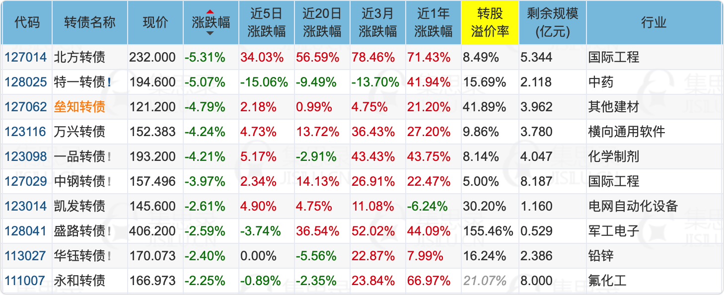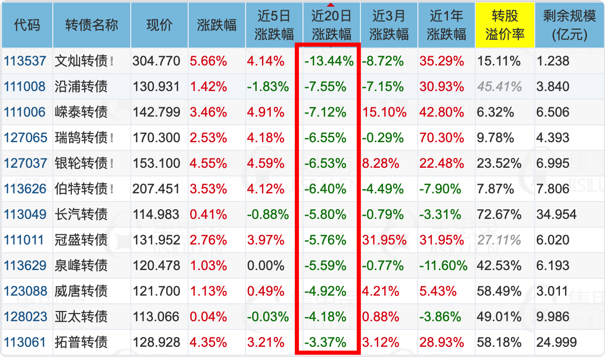 下面这些转债近20日跌幅较大,以及数据未统计出的远东转债,明新转债。