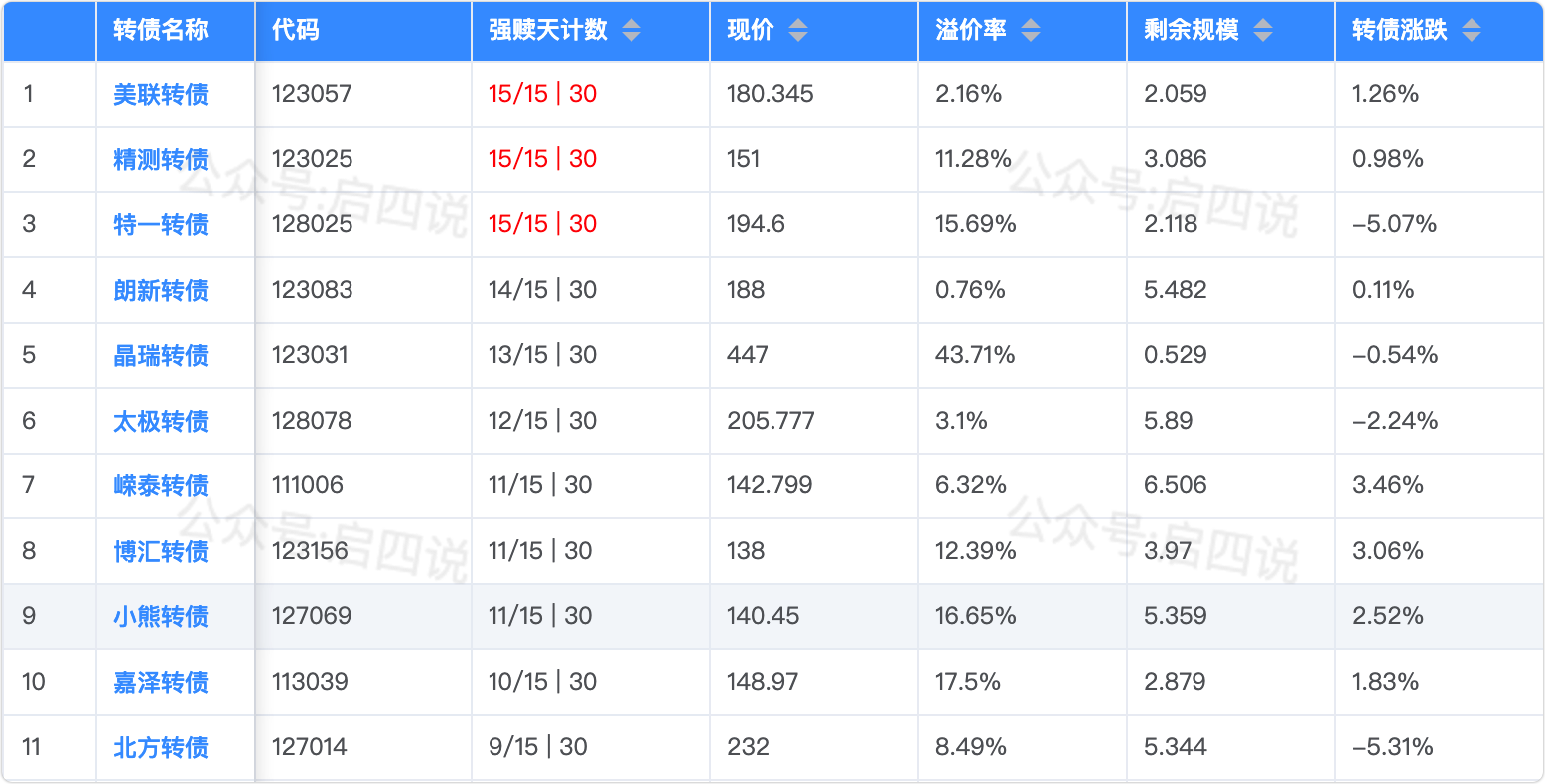下面这些转债,要注意强赎杀溢价风险,尤其是溢价率在5%以上的。