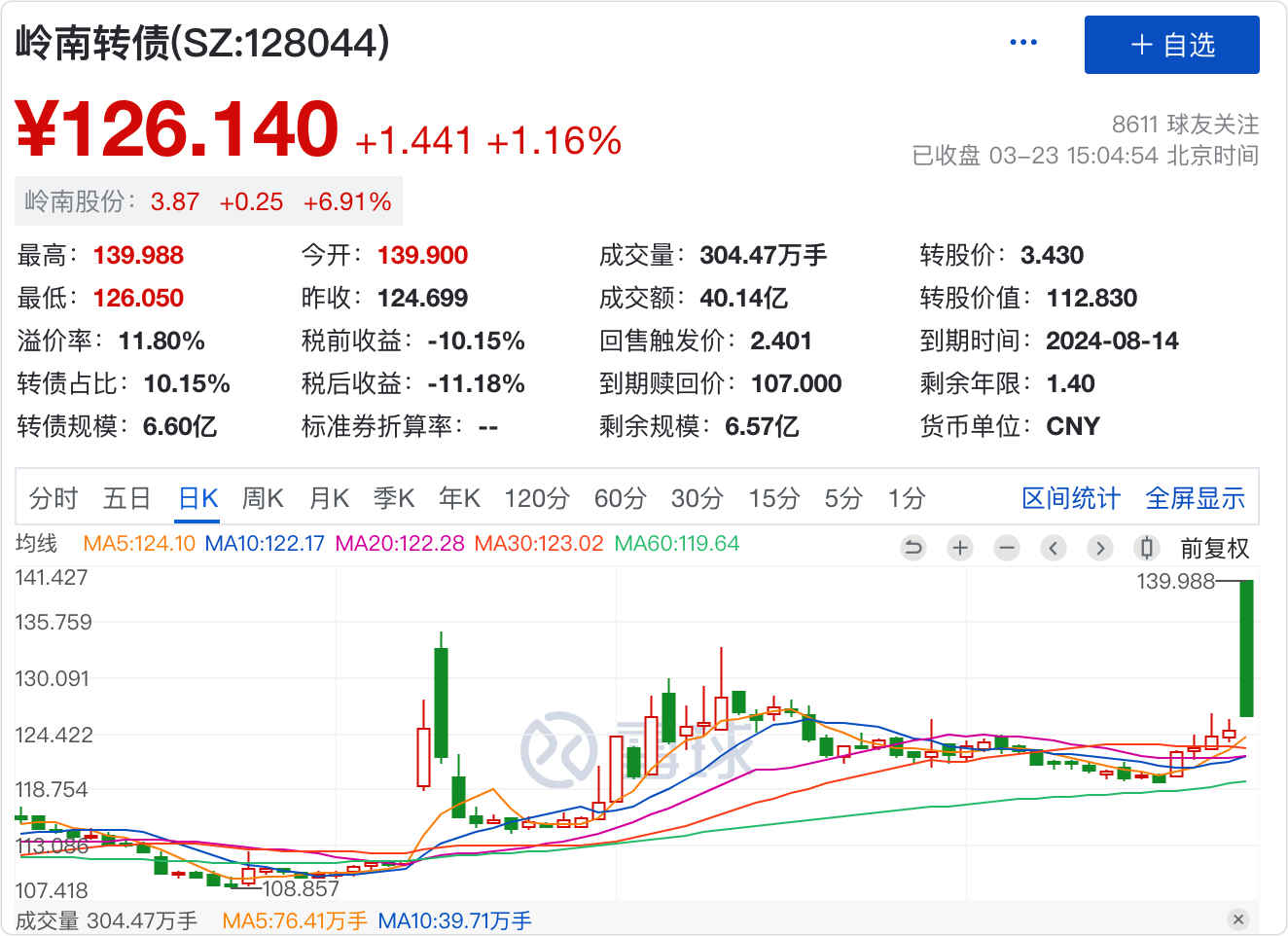 1、岭南转债,今天吃到大肉,得益于ChatGPT概念再次爆发,早上开盘最高冲高到139.988。