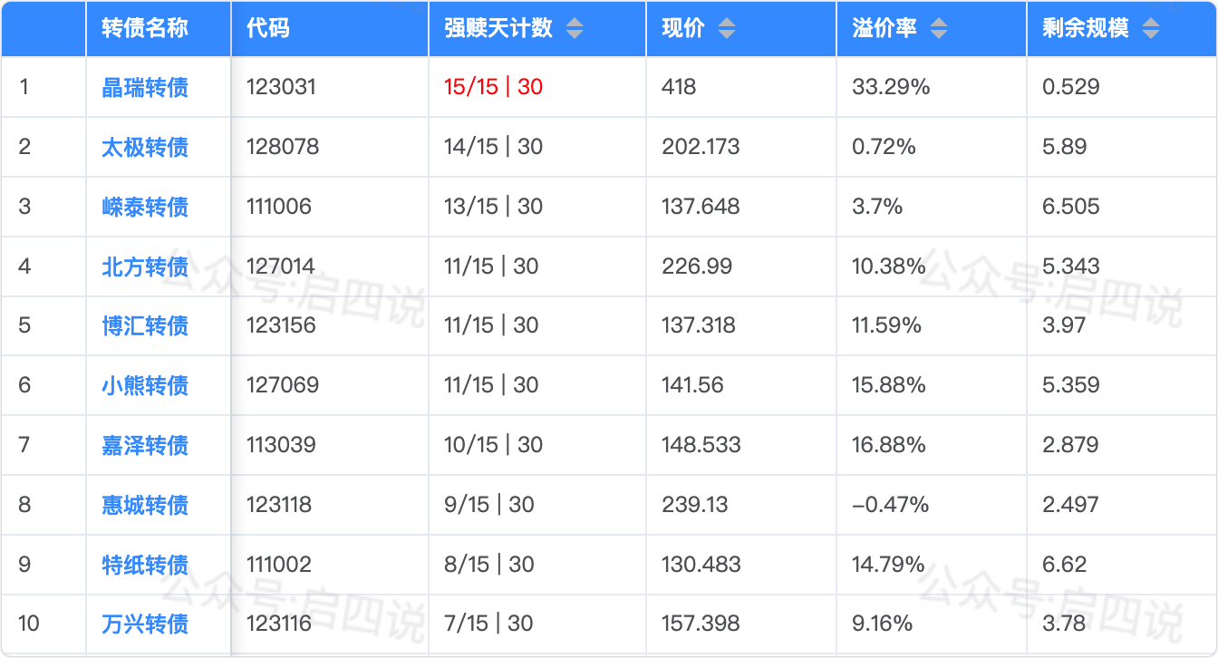 下面这些转债,要注意强赎杀溢价风险,尤其是溢价率在5%以上的。