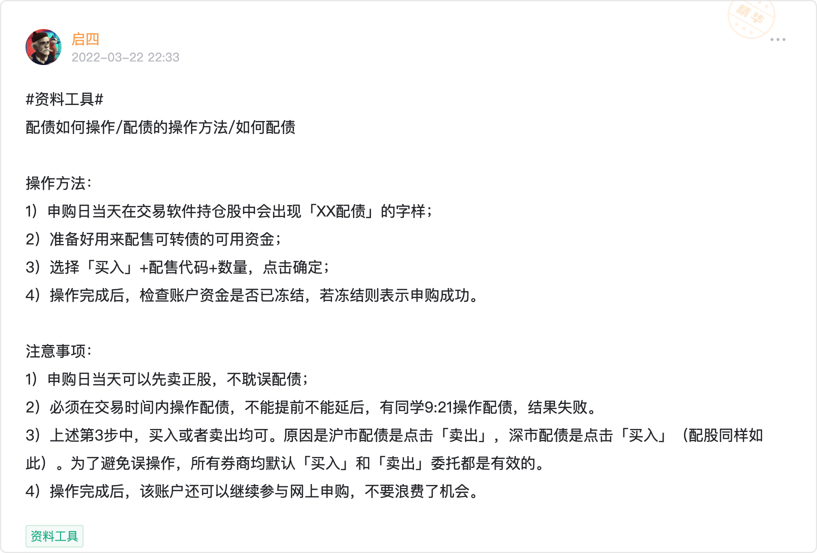 另外,整理了一下配债的操作方法和注意事项,建议将下面的图片收藏下来,配债的时候参照着操作就行。