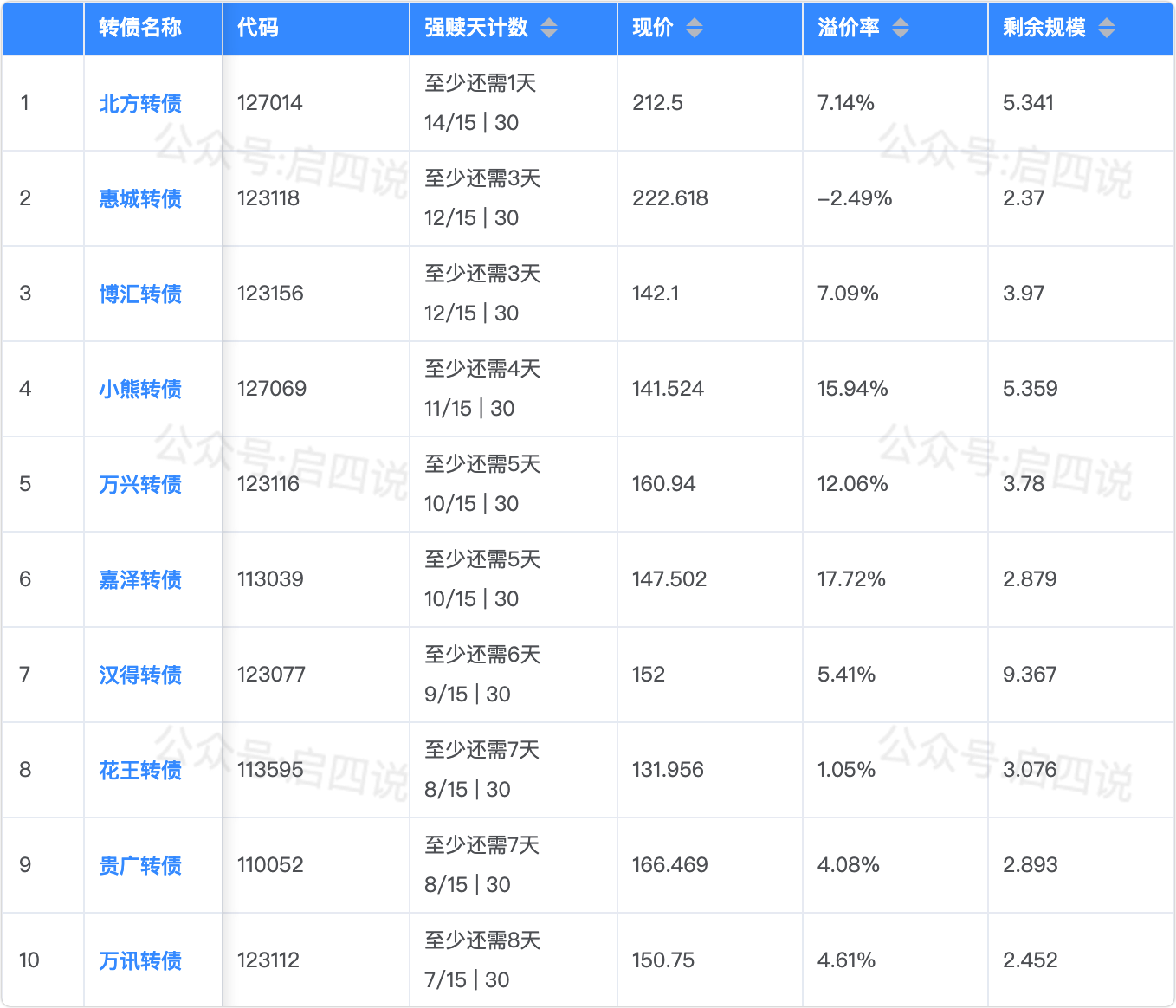 下面这些转债,要注意强赎杀溢价风险,尤其是溢价率在5%以上的。