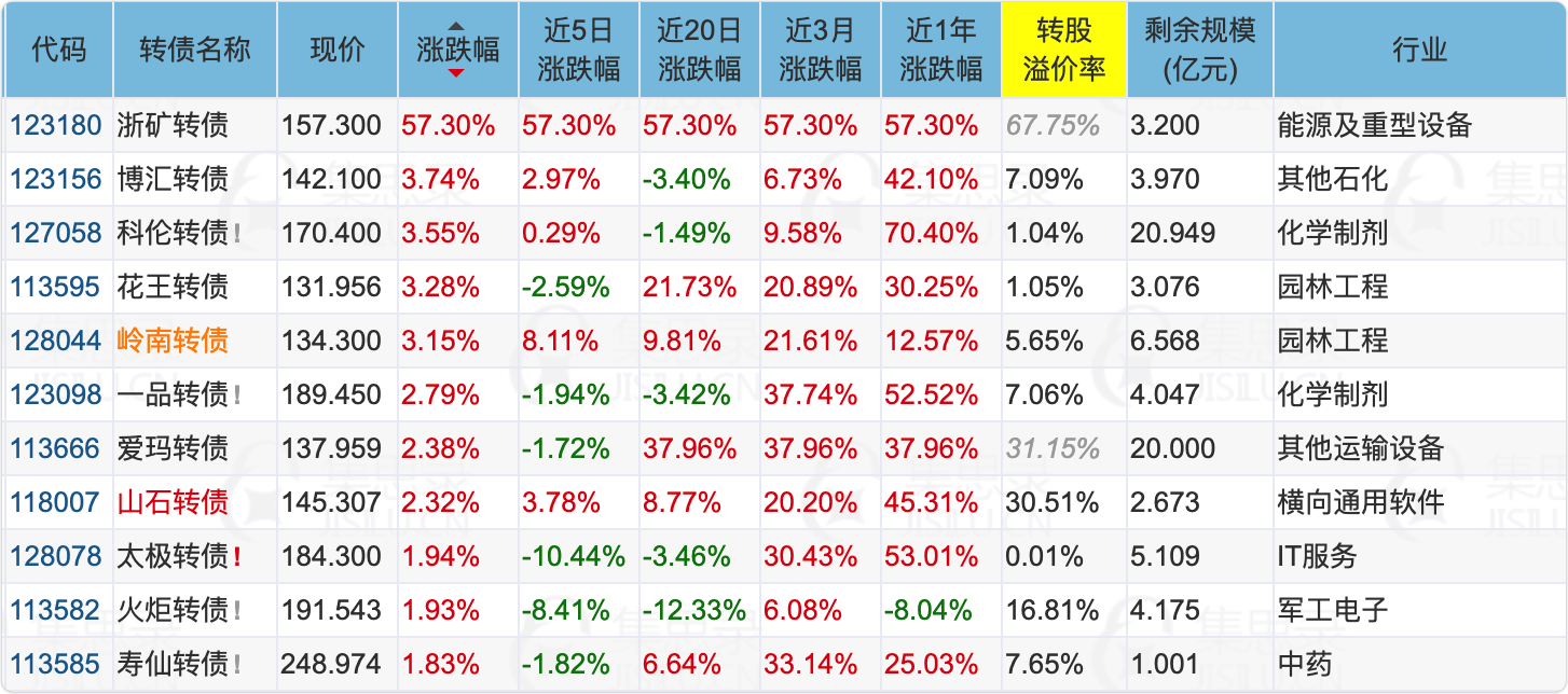1、浙矿转债,如昨晚文章中的分析,和测绘转债一样,也成妖了。浙矿转债流通规模2.2亿,比测绘转债的2.06亿稍小一些,并且不像测绘转债有算力概念处于热门赛道,但优点是其质地不错,且最近次新债炒作监管并不严格,明天可能继续冲高。