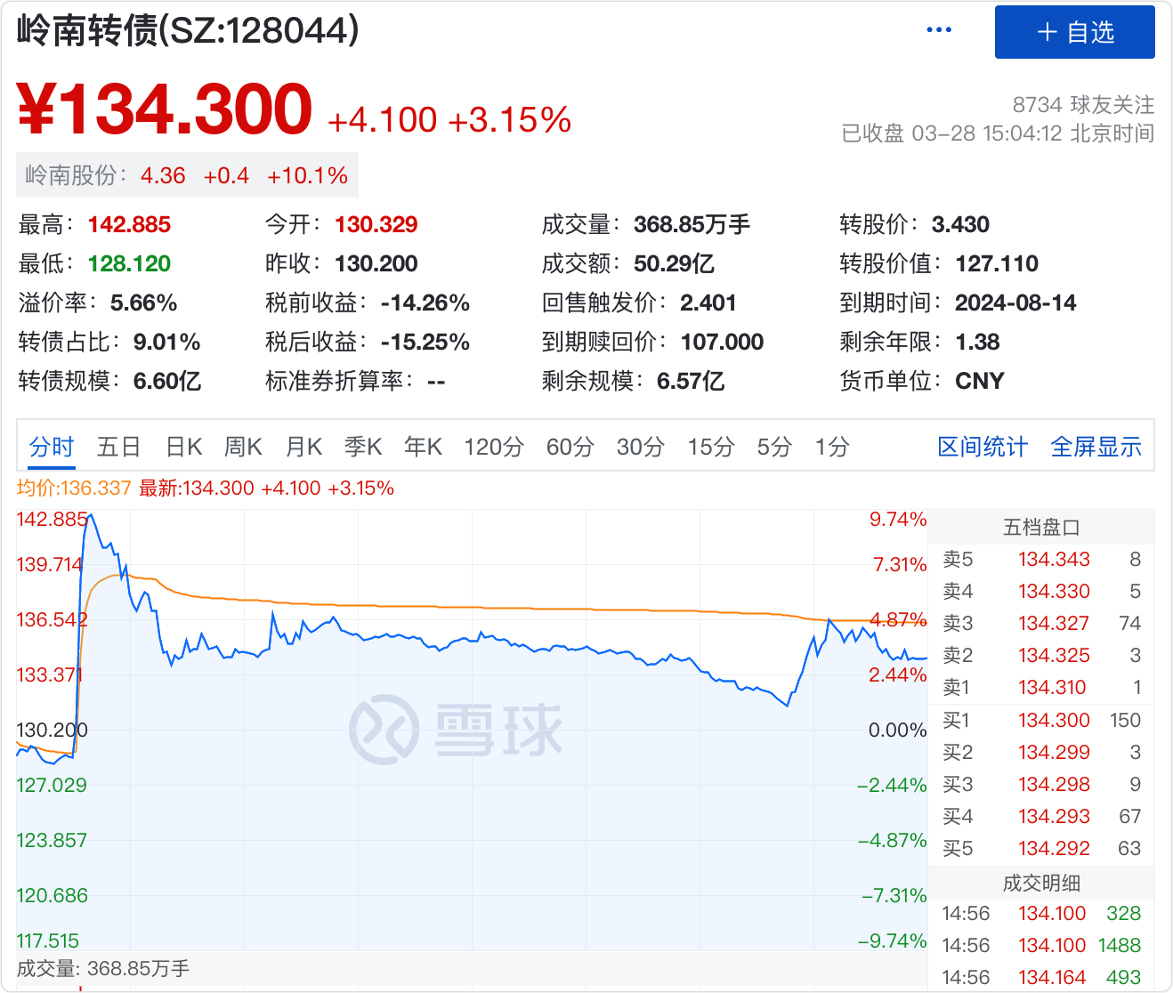 2、岭南转债,142减仓