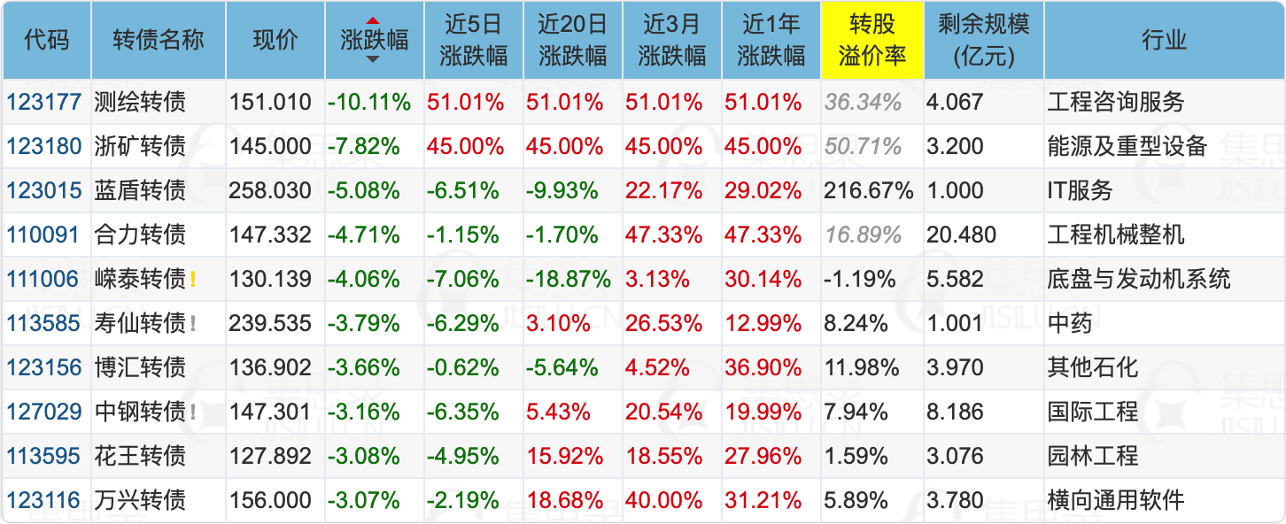2、整理了近期跌幅较大的转债