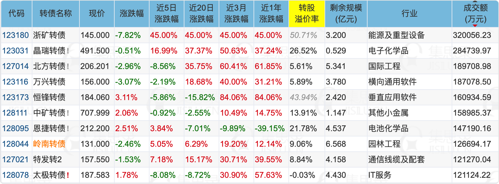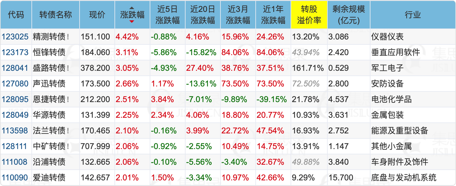 1、跌幅榜中,测绘转债和浙矿转债跌幅较大,两只都是最近新上市被炒作起来的次新妖债,上市首日收盘两者都达到了157.3,之后测绘转债最高价达到了182,跳水最低价151,浙矿转债最高价达到了173,跳水最低价145。