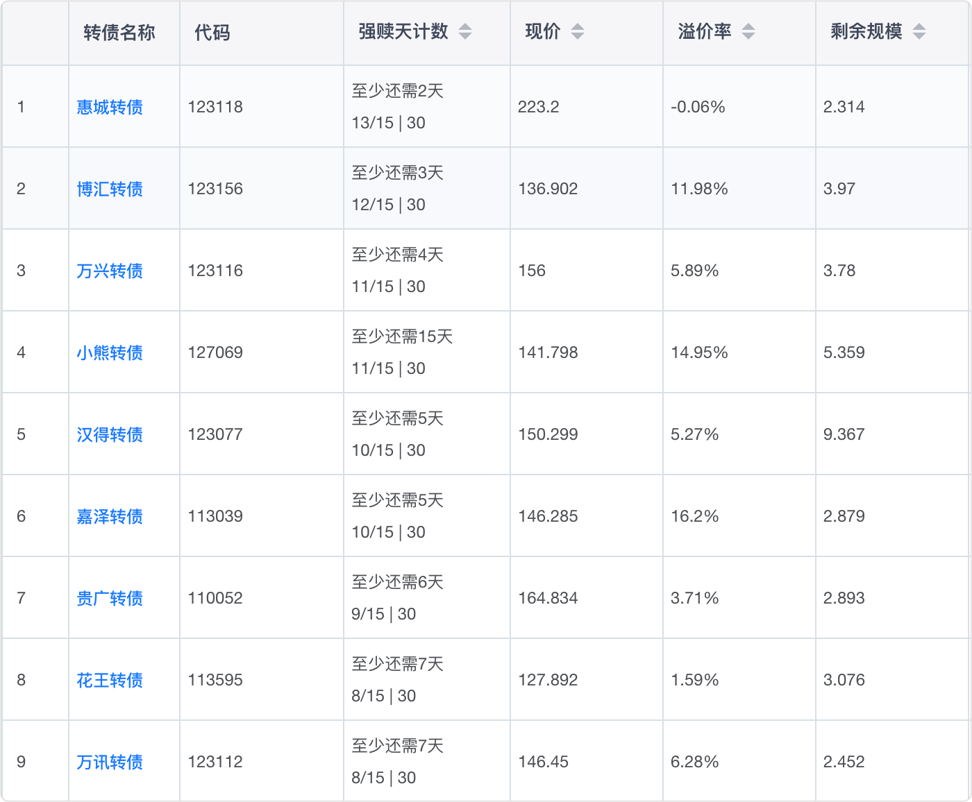 2、即将满足强赎转债