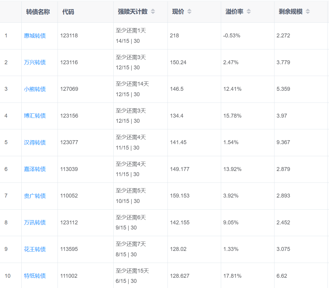 2、即将满足强赎转债
