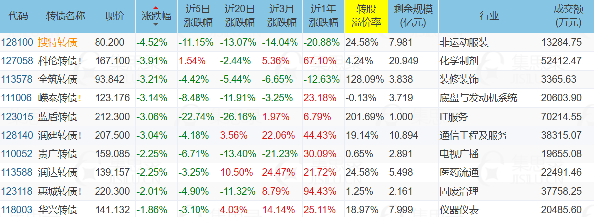 2、跌幅榜前十