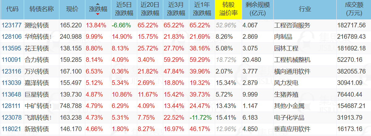 转债方面,次新妖债、养殖、人工智能、风电涨幅居前,垃圾债、强赎债跌幅居前。