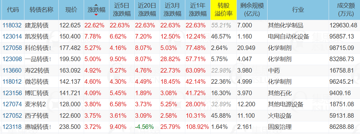 转债方面,医药、房地产、光热发电板块领涨,半导体分歧、养殖业领跌。