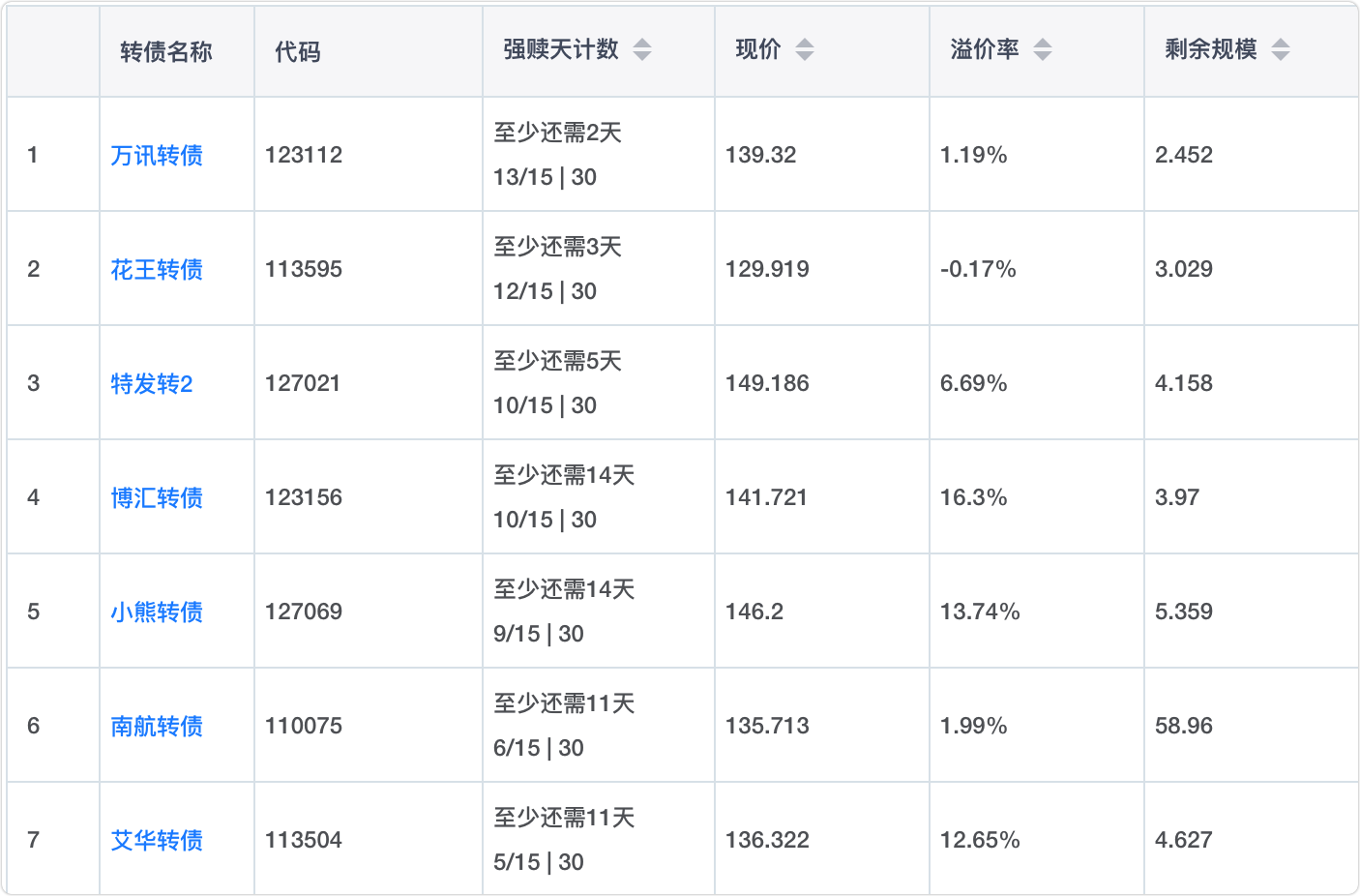 2、即将满足强赎转债