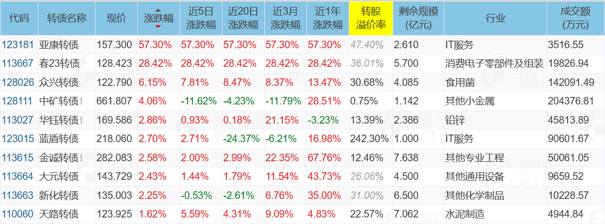 3、亚康转债,如昨天预测的,今天尾盘冲到了157.3元,它的上市流通规模是1.23亿,比声迅转债的1.39亿,和恒锋转债的1.45亿都要小,后两者上市后都被炒作到了200元以上。