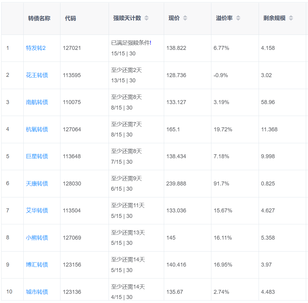 下面这些转债,要注意强赎杀溢价风险,尤其是溢价率在5%以上的。