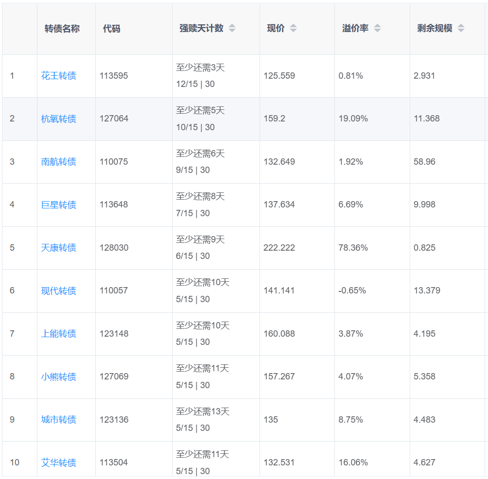下面这些转债,要注意强赎杀溢价风险,尤其是溢价率在5%以上的。