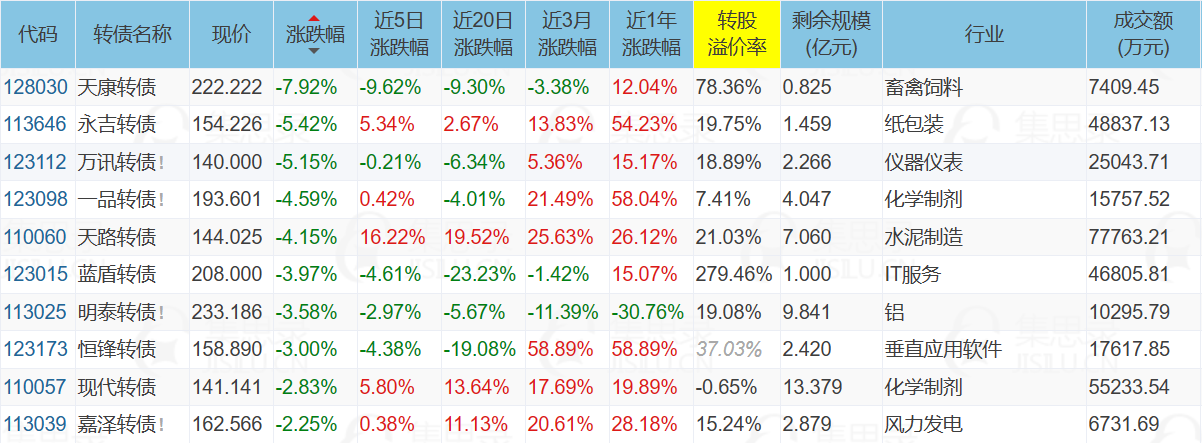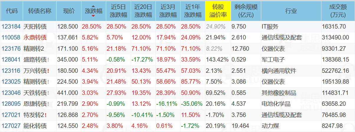1、特发转2,昨日收盘跌幅11.01%,溢价率-1.47%,今天正股上涨2.94%,转债上涨2.7%,溢价率-1.7%。有点类似强赎后的汉得转债和万兴转债,在公告强赎后大幅下跌,但是因为身处主线,随后又发生了反弹。但是汉得短暂反弹又开始大幅下跌,万兴则大幅上涨,所以强赎后能否大幅反弹还要开正股的价值和情绪热度。
