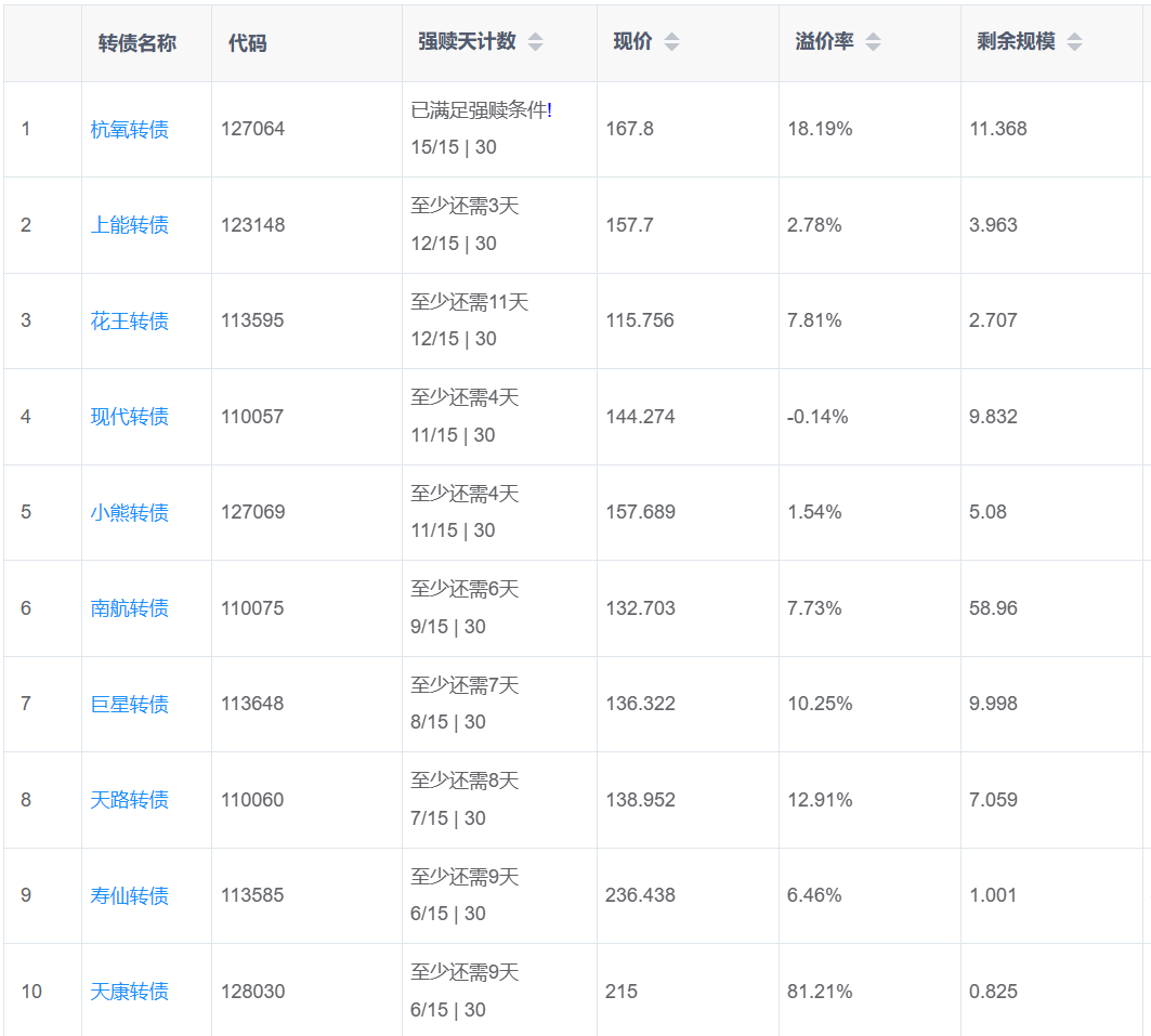 下面这些转债,要注意强赎杀溢价风险,尤其是溢价率在5%以上的。
