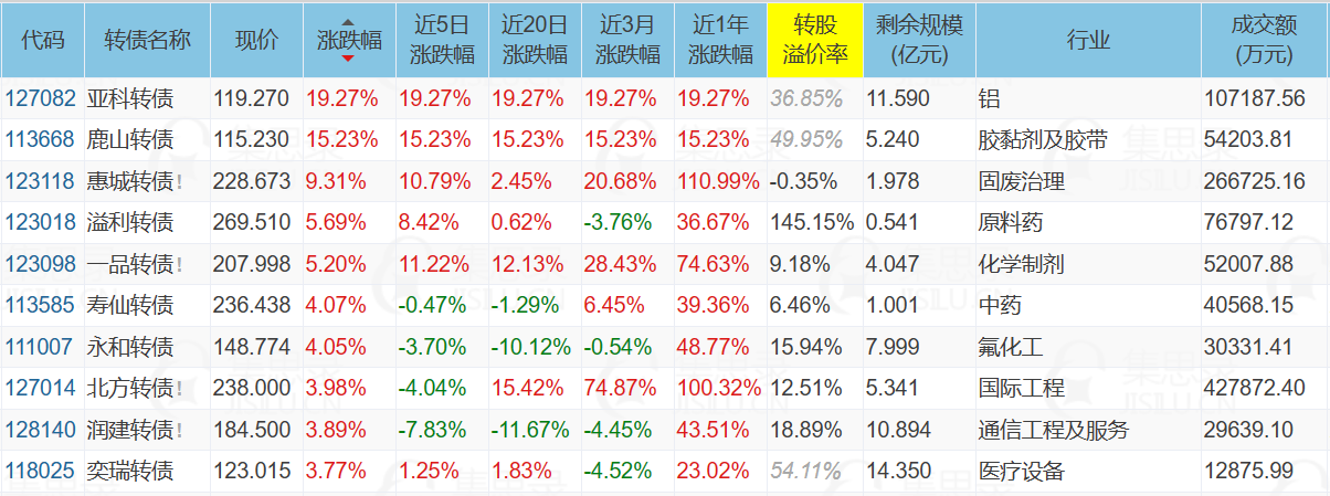 1、涨幅榜前十