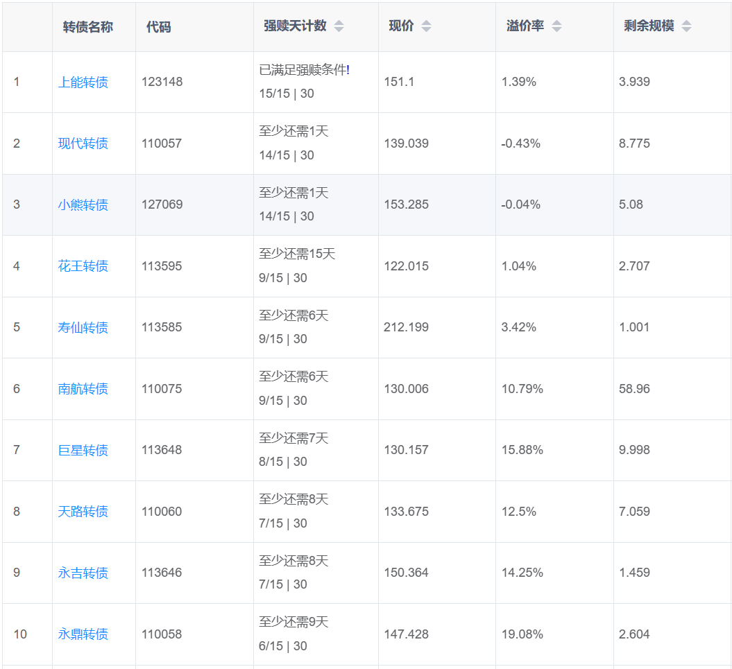 2、即将满足强赎转债