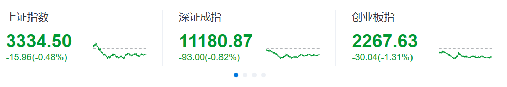 A股三大指数全天走低,截至收盘,沪指跌0.48%,深成指跌0.82%,北证50涨2.68%,创业板指跌1.31%。沪深两市全天成交额10712亿元,北向资金净买入6.34亿元。两市超3500股下跌。